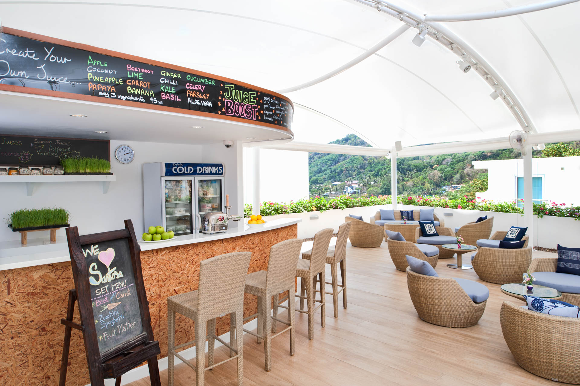 У отеля есть клубный павильон для проведения семинаров, встреч разного формата, просмотра фильмов и так далее. Йога студия — закрытое помещение с климат-контролем, тренажёрный зал с кардио и strength & conditioning тренажёрами. Бар свежевыжатых соков с большим выбором фруктовых и овощных соков холодного отжима, а также смузи и натуральных спортивных напитков с суперфуд добавками, кофейня с качественным кофе бренда Illy. Ресторан на 40 персон с вегетарианскими, веганскими и сыроедческими блюдами по меню с видом на море. Открыт для обедов и ужинов с 11 утра до 10 вечера. Мастер-классы по правильному питанию проводятся 2 раза в неделю.