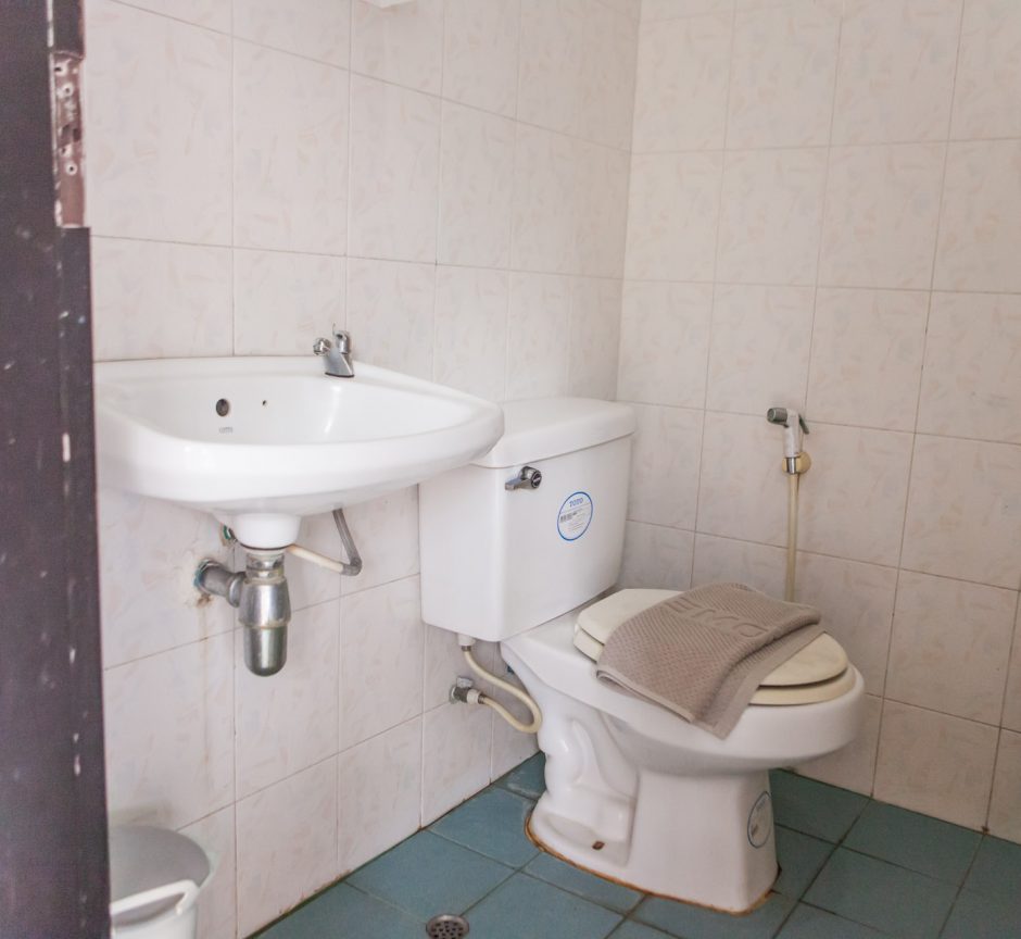 В номере двуспальная кровать, ванная комната с душем, кондиционер