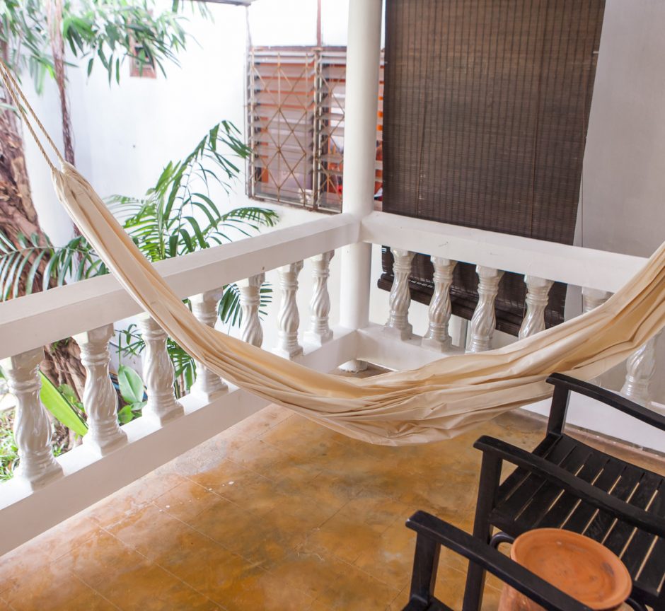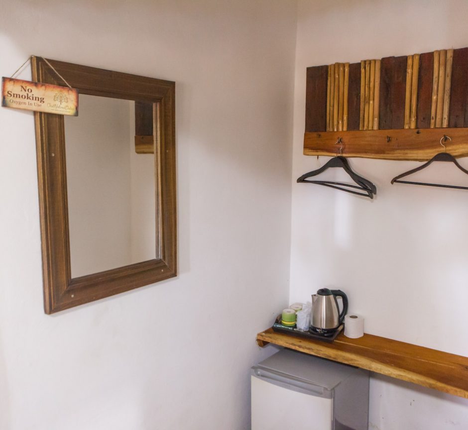 В номере двуспальная кровать, ванная комната с душем, кондиционер. Небольшая терраса со столом и стульями, гамак.