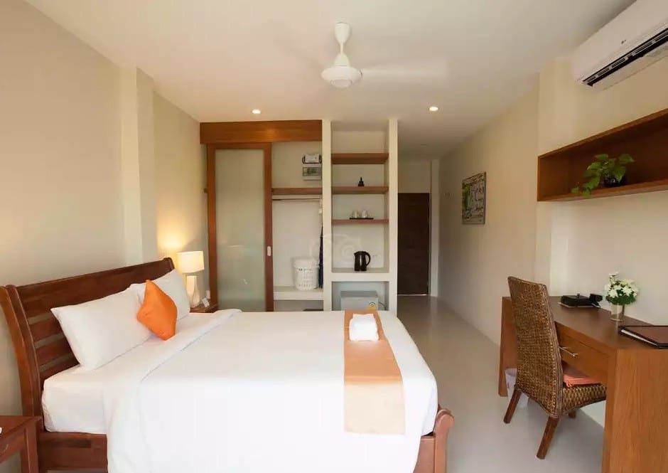 Площадь номера, включая балкон, составляет 35м2. В номере: просторная душевая комната, кровать размера queen, кондиционер/вентиляторы, большой письменный стол (2.5 метра), полки для книг, сейф (вмещающий даже большой ноутбук), электрочайник, среднего размера холодильник, встроенный шкаф (вмещающий даже багаж).